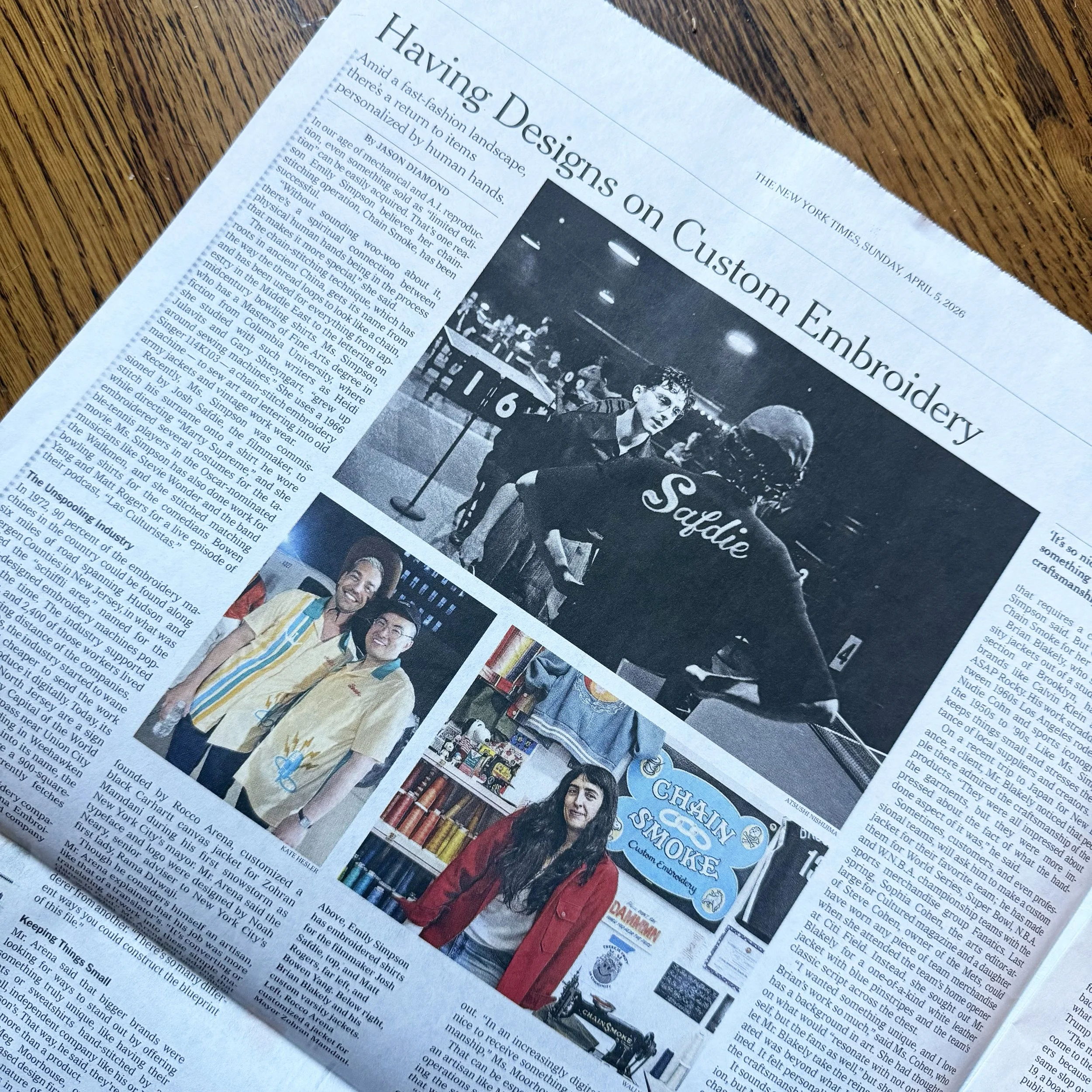 Chain Smoke was featured as the through-line in a Style section piece by Jason Diamond about the enduring history and popularity of chainstitch embroidery, featuring prominent brand and media work by the studio. Read more here.